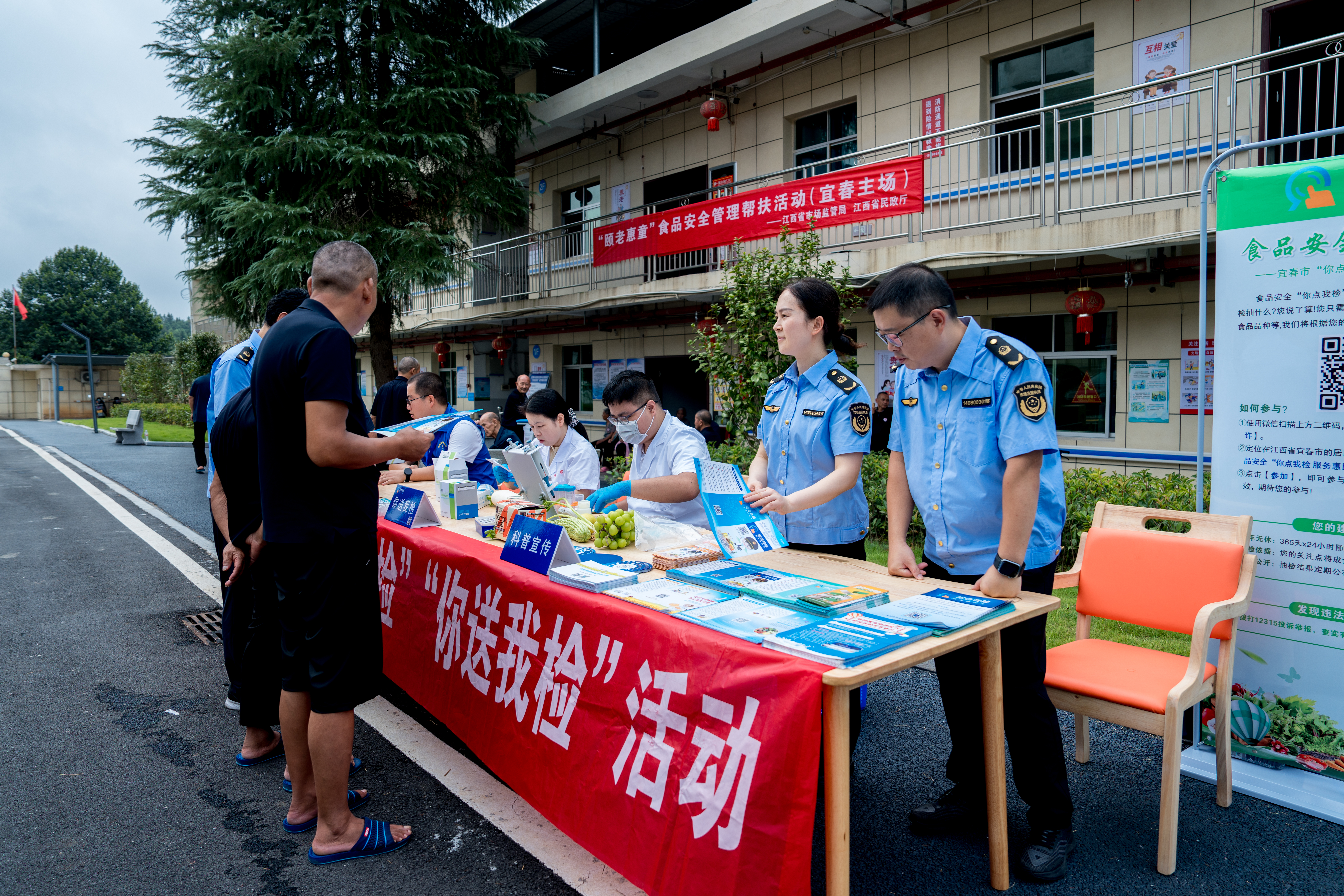 “你点我检”“你送我检”——消弭风险现患。现场引见勾当流程,邀请加入勾当人员对关怀的食物进行点“单”,检测机构按照白叟的点单开展抽样。勾当现场还设置了“你送我检”快检工做台,对当日食材进行快速检测,现场出成果。同时,向白叟们发送食物药品等宣传材料,环绕健康饮食等方面,科普食物平安学问。