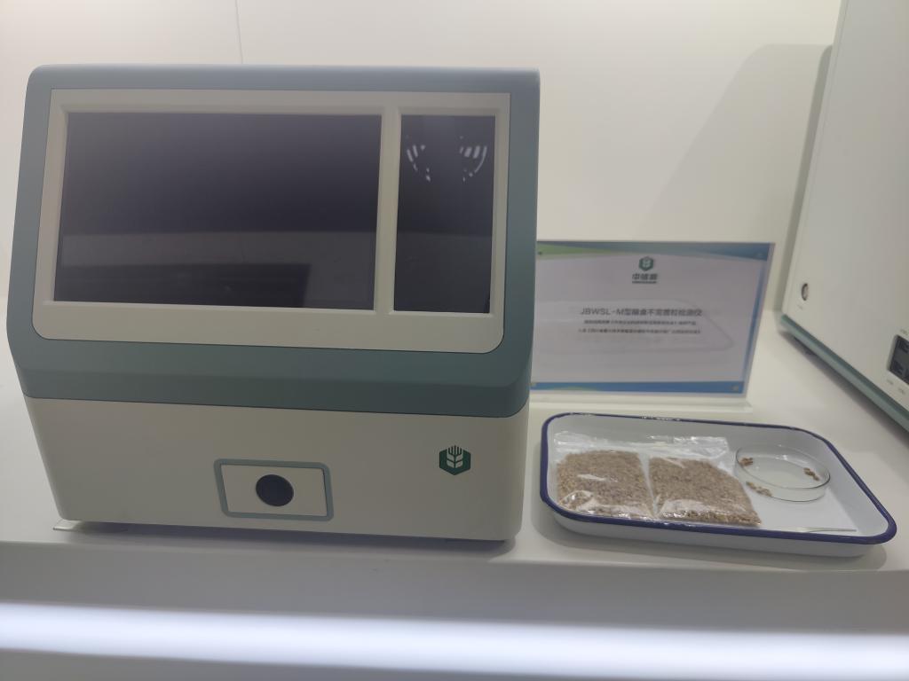 这是10月15日正在中储粮成都储藏院内拍摄的JBWSLM型粮食不完美粒检测仪。新华网 李然 摄。
