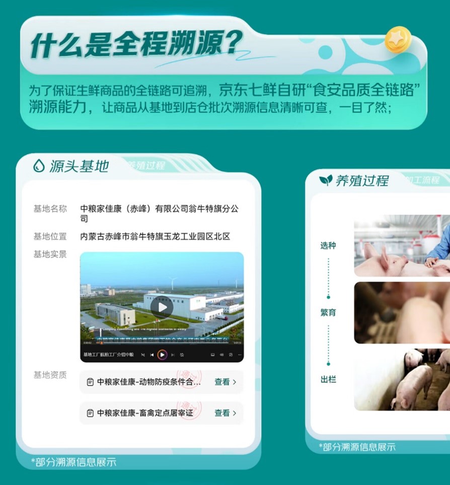扫描或点击关心中金正在线年全国食物平安宣传周以“尚德守法共享食安”为从题,于9月11日正式启动。值宣传周启动之际,京东七鲜上线自研的“食安质量全链”溯源系统,为用户可视化展示商品从出产到门店的完整畅通过程,以科技赋能食物平安,让消费者买得、吃得安心。通过“食安质量全链”溯源系统,消费者能够轻松查询到该商品从到门店的完整畅通过程。该系统包罗供应商天分、商品检测演讲、物流运输消息、仓端自检演讲及门店抽检成果等各类食物平安环节消息,实正做到了通明化、可视化溯源。500)this。width=500 align=center hspace=10 vspace=10 alt=2025全国食物平安宣传周启动京东七鲜上线“全程溯源”守护食物平安目前,涵盖肉类、海鲜、蔬菜、生果等多个品类。以180天白猪冰鲜猪肋排、深海野逛大黄鱼、富硒菠菜苗、庞各庄头茬小西瓜等为例,正在泉源管控环节,各类天分证明、出厂检测演讲;物流运输环节,能够实现运输体例取运输温度监测记实;入库仓储部门,能够实现入库质检成果、检测演讲的系统化留存;城市配送、门店发卖等环节则实现了商品流、温度、进店检测演讲等全环节记实及。六大畅通环节消息完整,形成实正意义上的“端到端”保障。